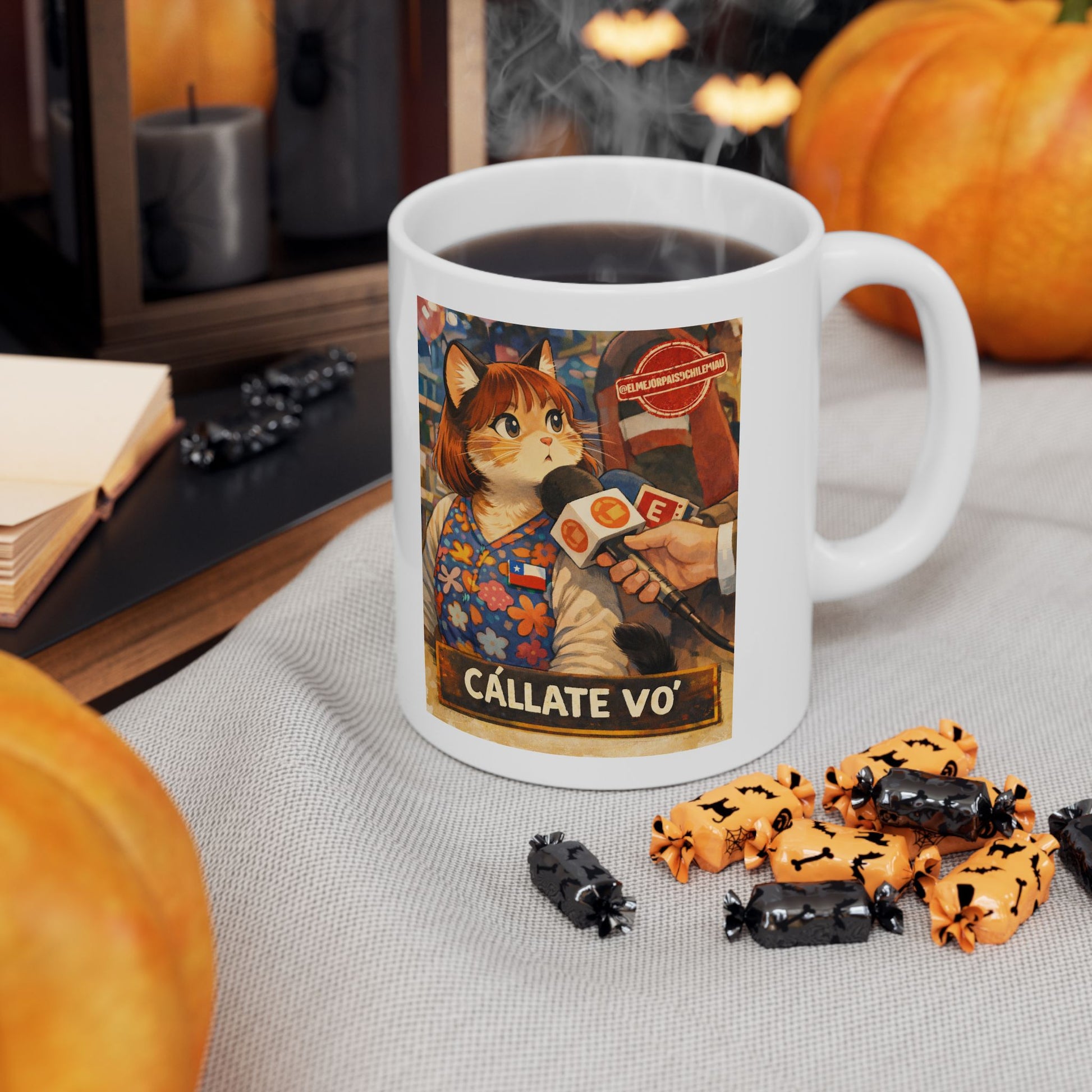 Warm up your coffee, tea, or hot chocolate with attitude using this ceramic mug featuring the iconic Chilean phrase: “No Soy Na Material de los Weones”.Born from Chilean street culture, this bold expression became a meme and a symbol of self-respect and strong personality. Thanks to advanced printing technology, the design comes to life with vivid colors and sharp detail, making this mug a standout piece for everyday use.Perfect as a unique gift or for those who love bold humor and cultural statement designs.Features:Durable white ceramic constructionAvailable in 11oz (0.33 l) and 15oz (0.44 l) sizesHigh-quality, vibrant color printingMicrowave and dishwasher safeLead and BPA-freeComfortable C-handle with glossy finish